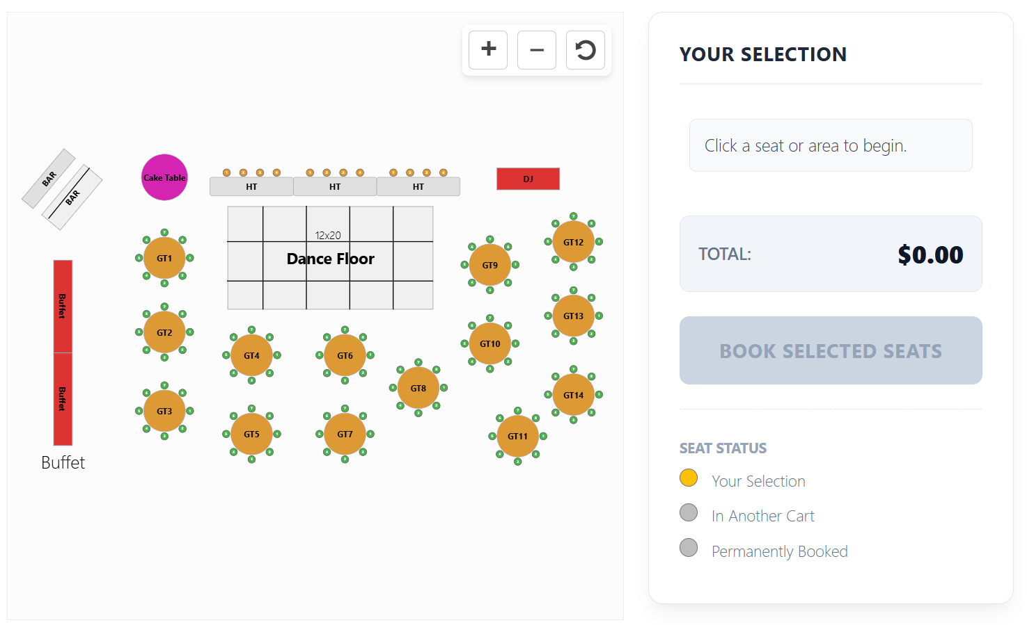 There’s no need for complex setups or extra ticketing add-ons. Our plugin connects your beautiful seating layouts directly to WooCommerce, giving you a complete, professional booking system.